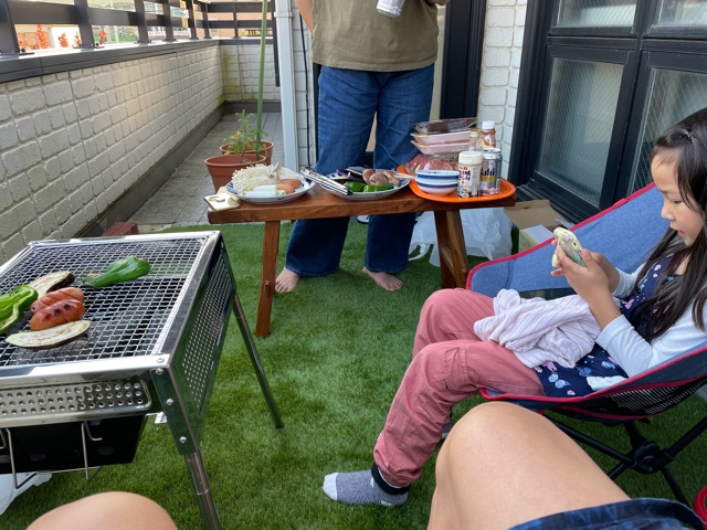 昨日も家の2階バルコニーでバーベキューしました。