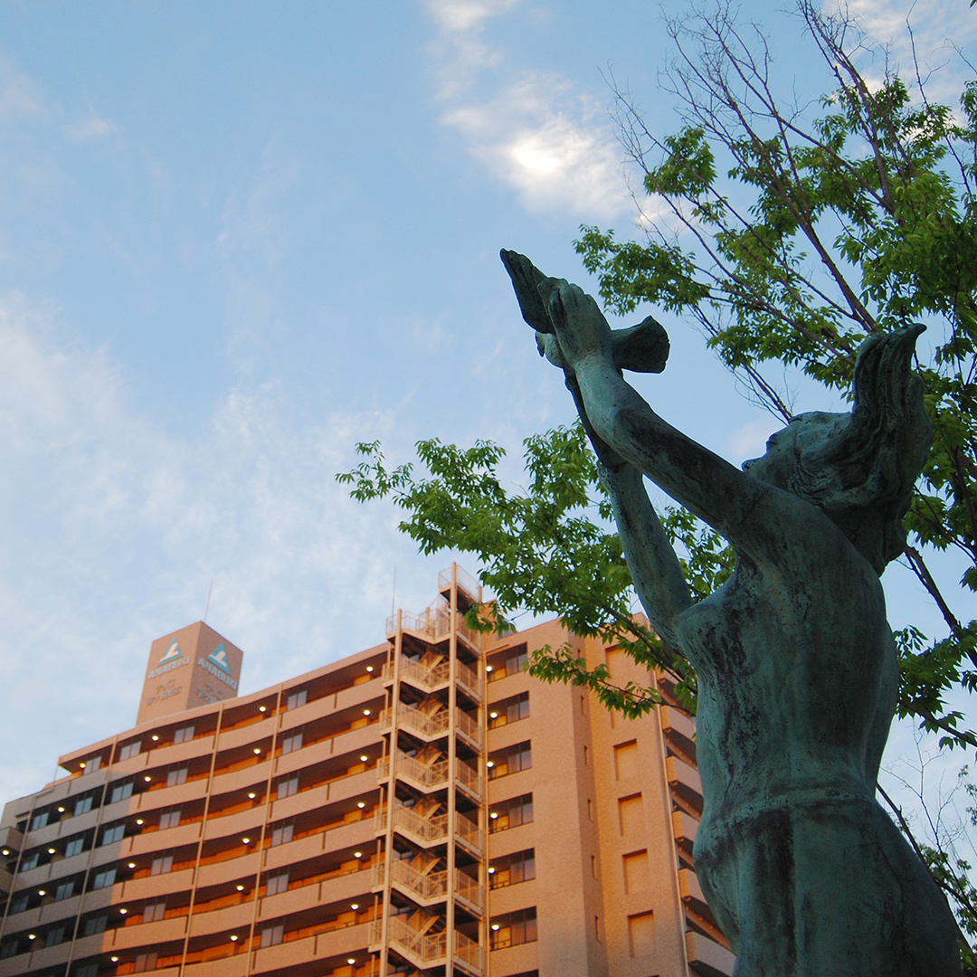 こちらの広場には、女性が市のマークを天に向かって掲げその上に鳩が止まっている像があります。