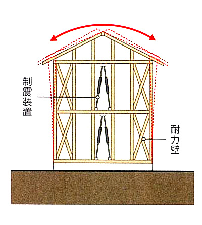 柱や梁を太くしたり、耐久壁を増やす、接合金物で緊結するなど建物自体を強固につくり、地震での倒壊を防ぐ。揺れを建物で直接受け止めるため、梁や壁が損傷する可能性があり地震後に住めなくなったり大きな修繕コストがかかる場合もあります。