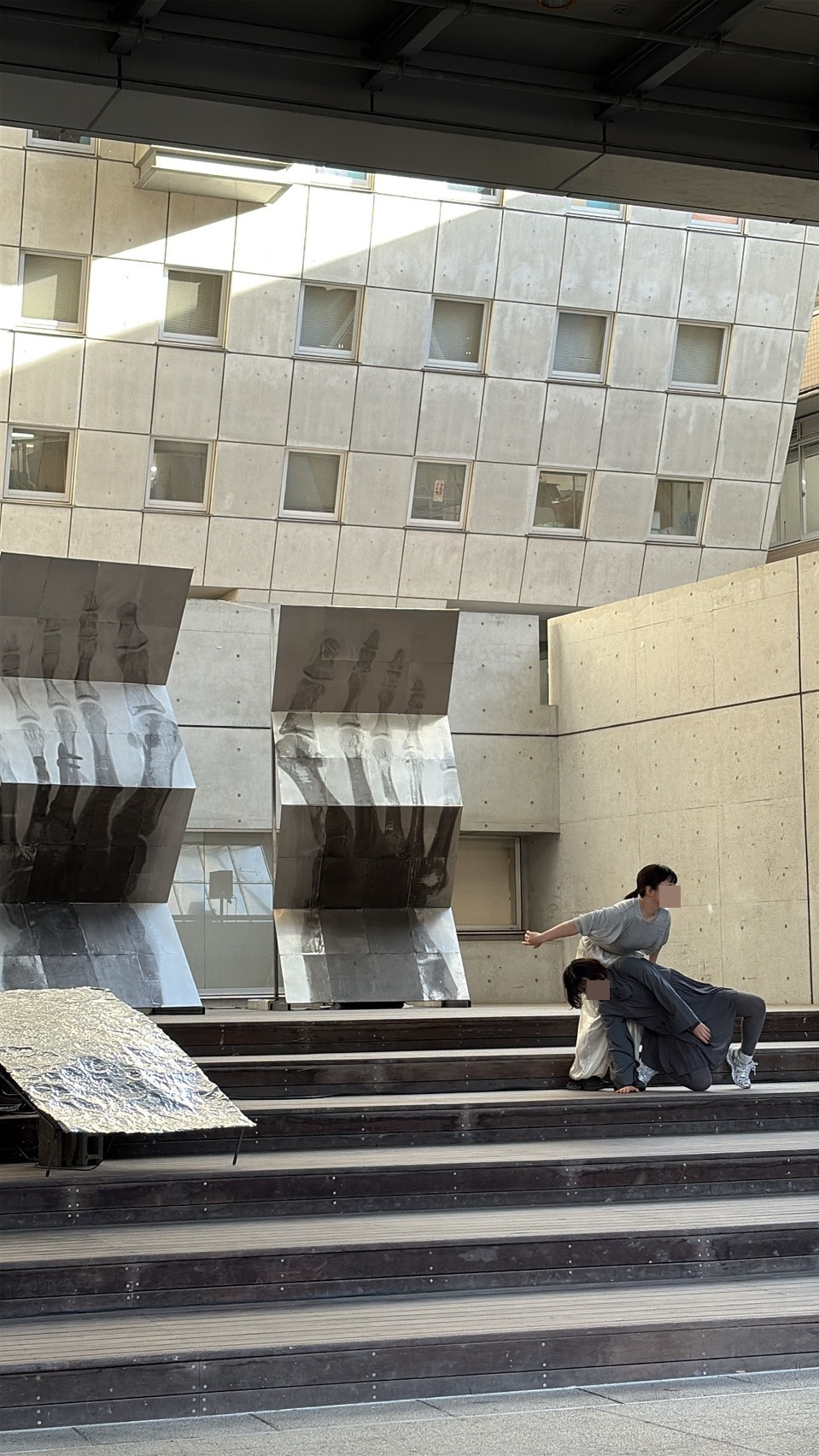 大学構内の屋外空間で行われる“踊り”のパフォーマンス